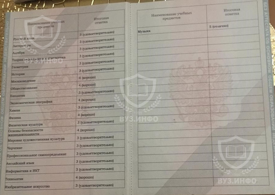 Кроме аттестатов основного общего образования в ВУЗ.ИНФО вы можете купить аттестат за 11 классов.